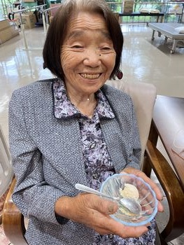 アイスクリーム(イベント食) 2022年06月21日取組報告 本日は、ご利用者が楽しみにされているイベント食の日です♪ 今の季節にぴったりなアイスクリーム☺ 皆さん大変喜ばれました。 美味しく頂きました♡