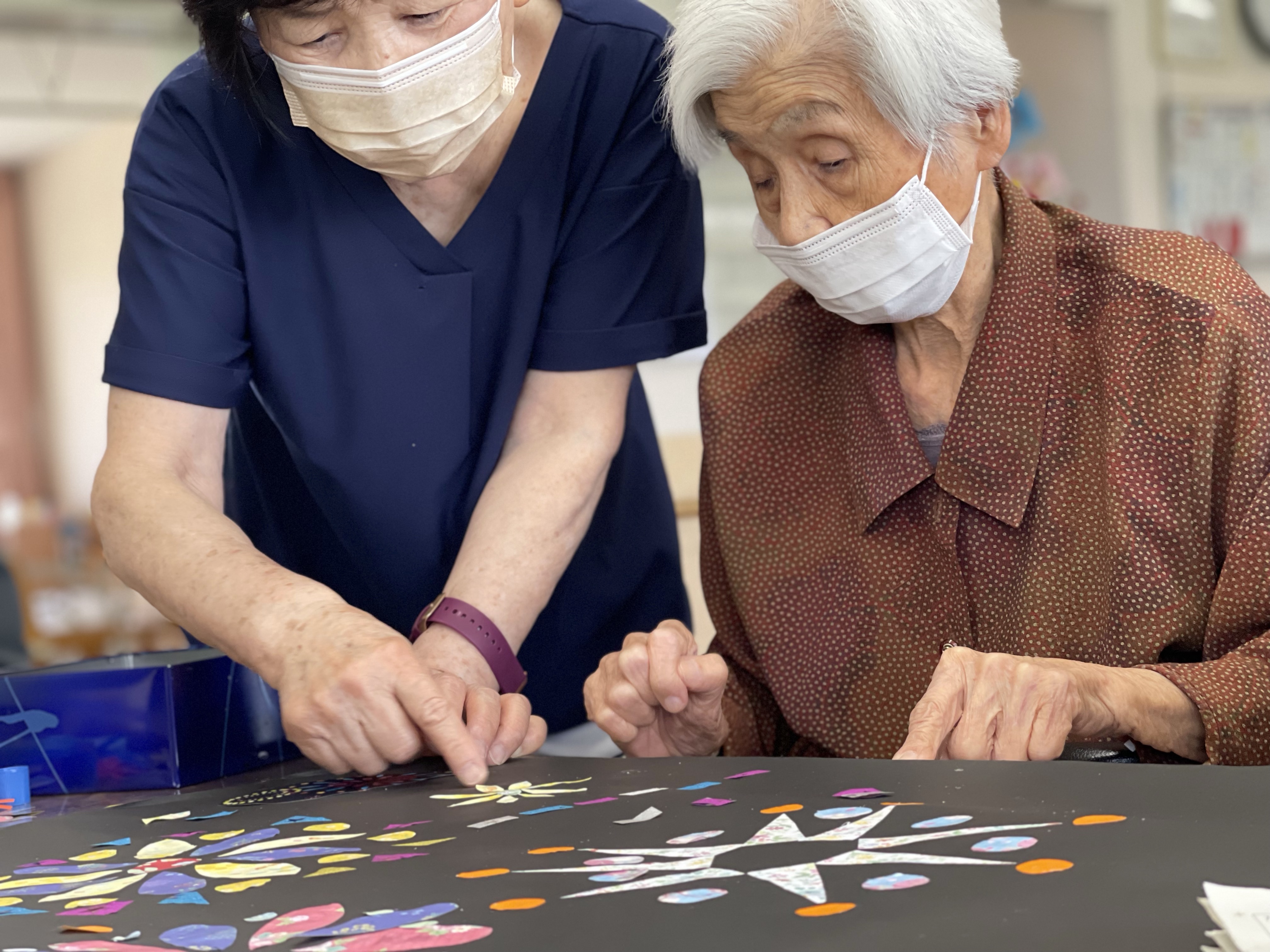 まだまだ残暑厳しいですが、レクリェーションの一環で、貼り絵を