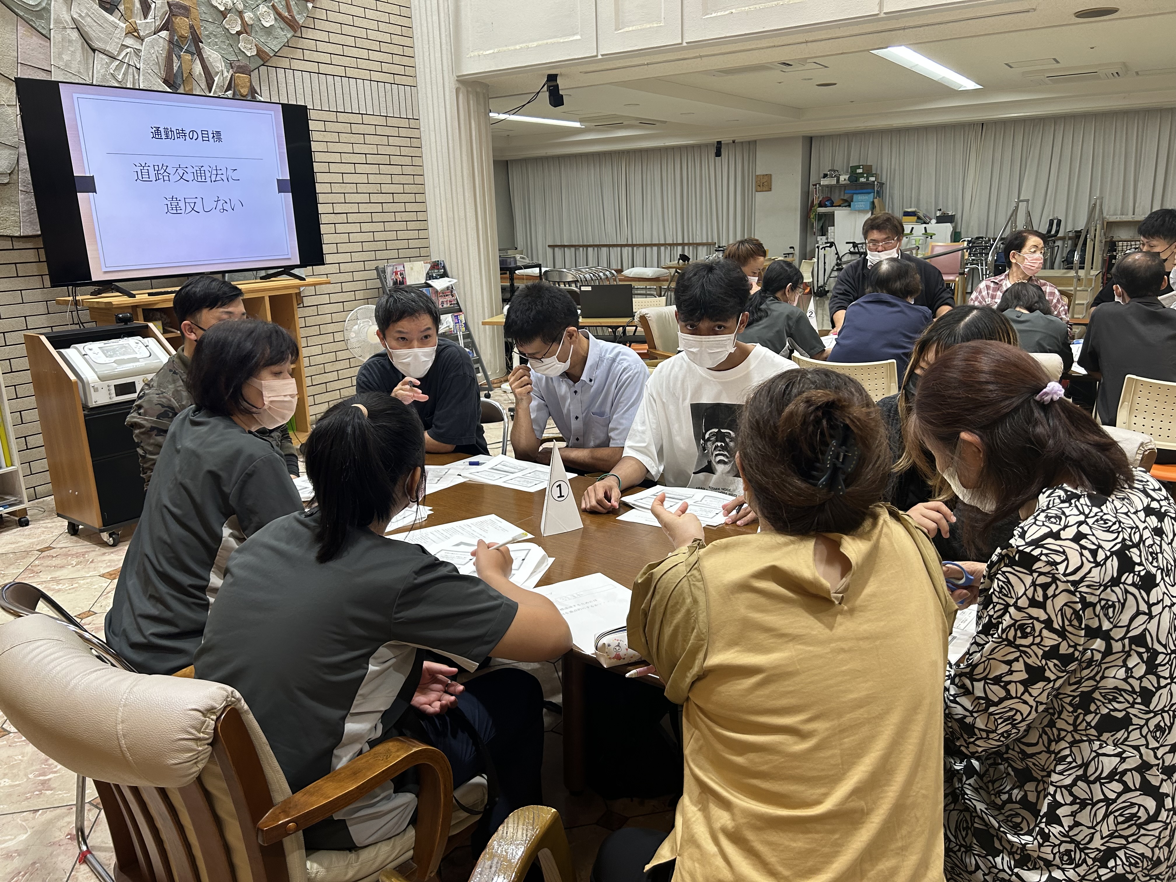 全職種が分かりやすいように交通安全の目標を話し合います。