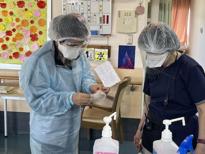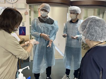 新型コロナウイルスシミュレーション 2024年12月04日取組報告 本日は、新型コロナウイルスシミュレーションです。 主に技能実習生へのガウンテクニック指導と陰圧室設置をしました。 感染症流行時期の為、安全・安心なサービス提供を今後も継続します。