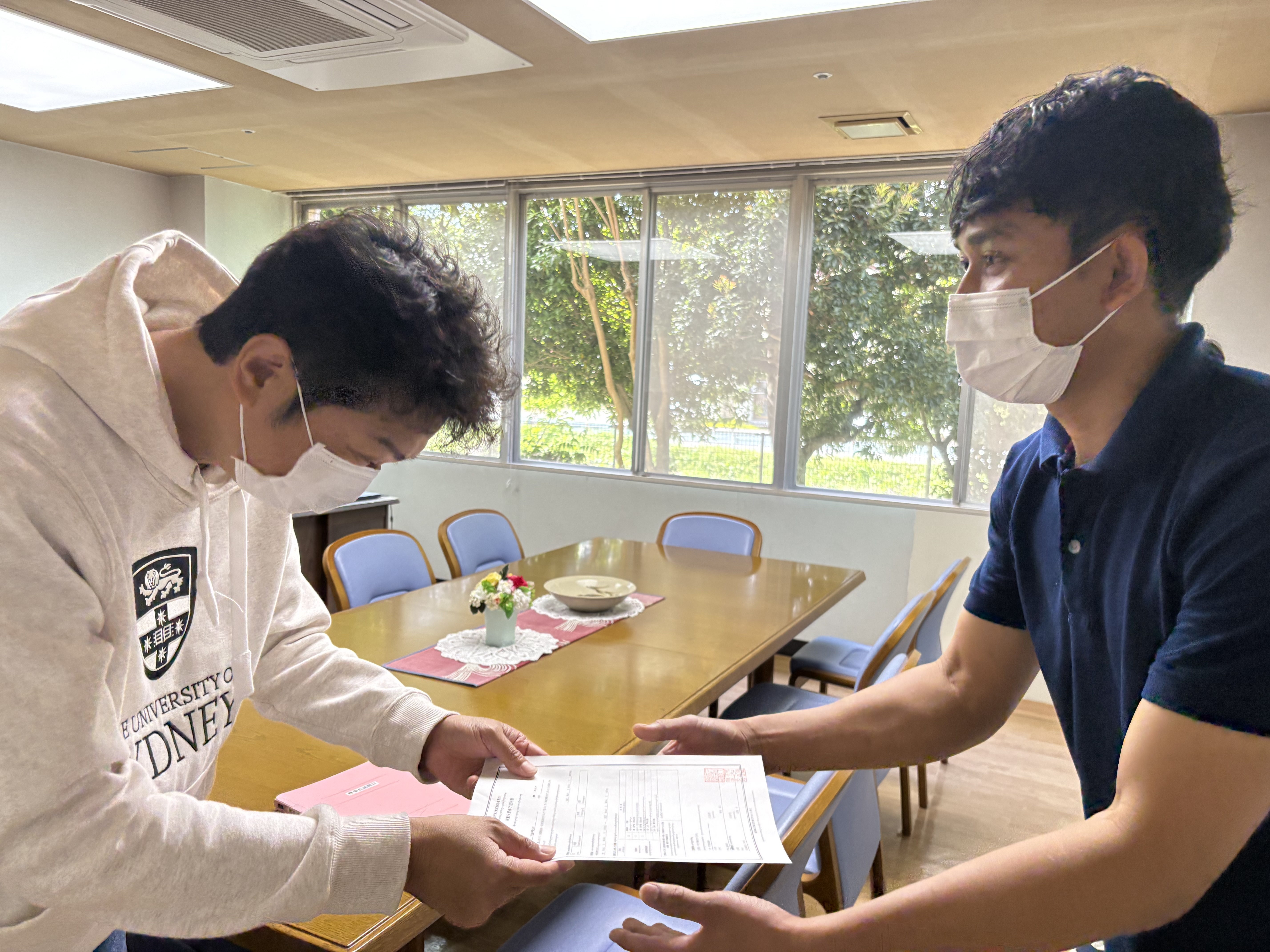 理事長から技能実習修了証明書をもらい、気持ちを新たに今後も頑張ります。