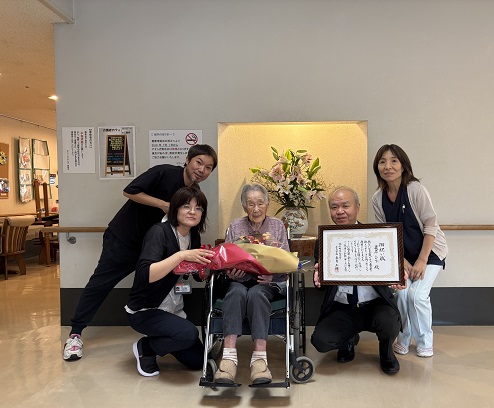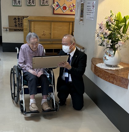 本日は、多久市最高齢105歳の表彰に多久市役所から表彰状と花束をいただきました。
