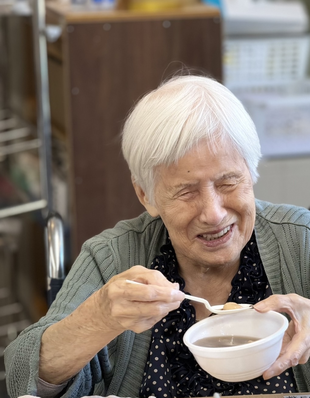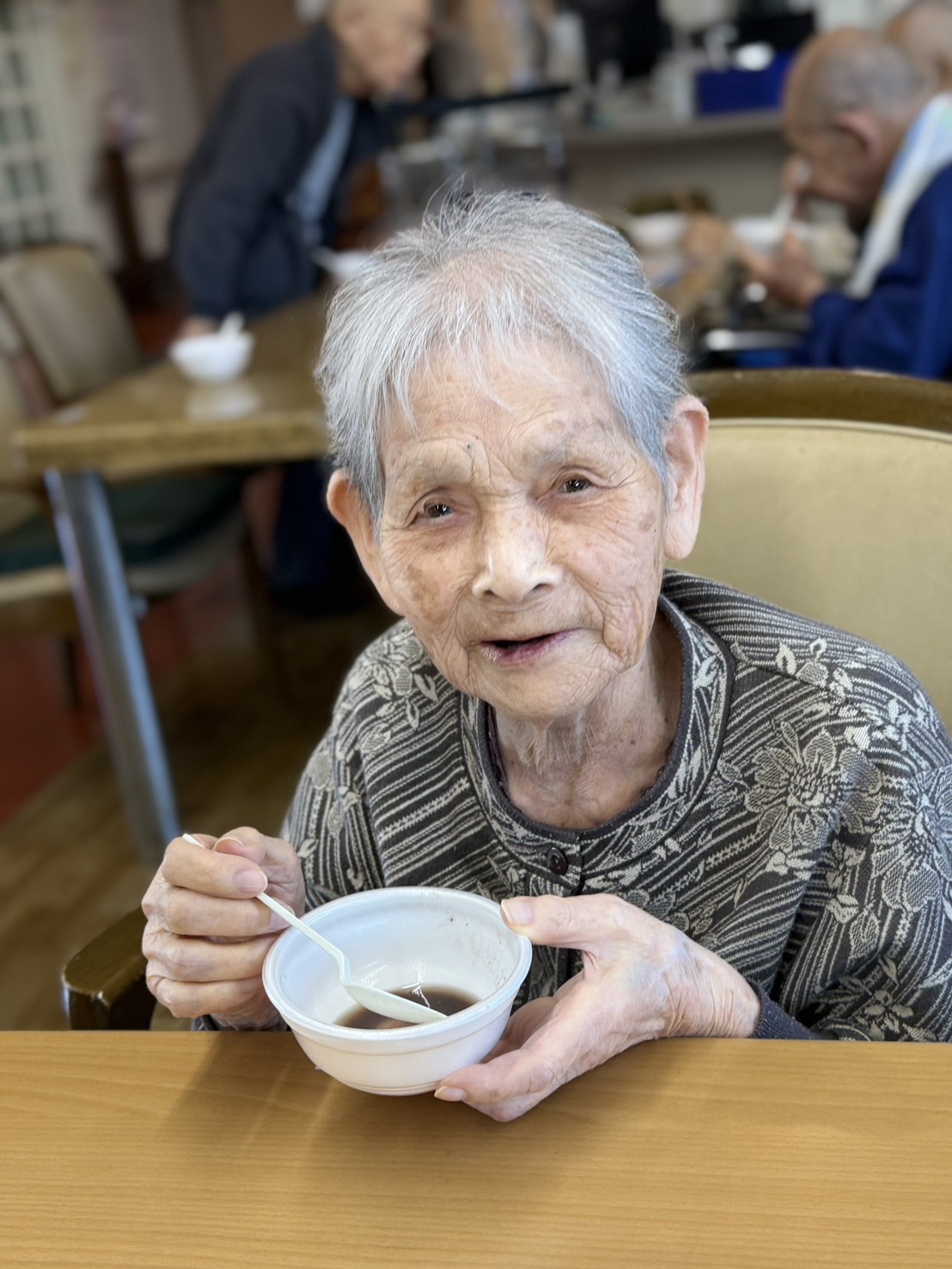 本日は、おやつづくりでぜんざいを食べました。