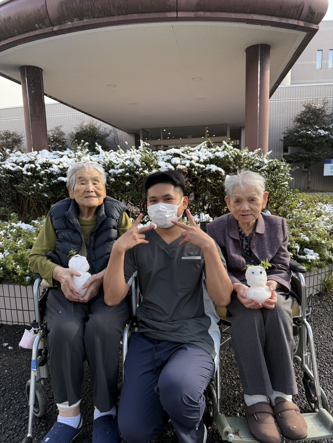 技能実習4期生も初雪に大興奮でした。