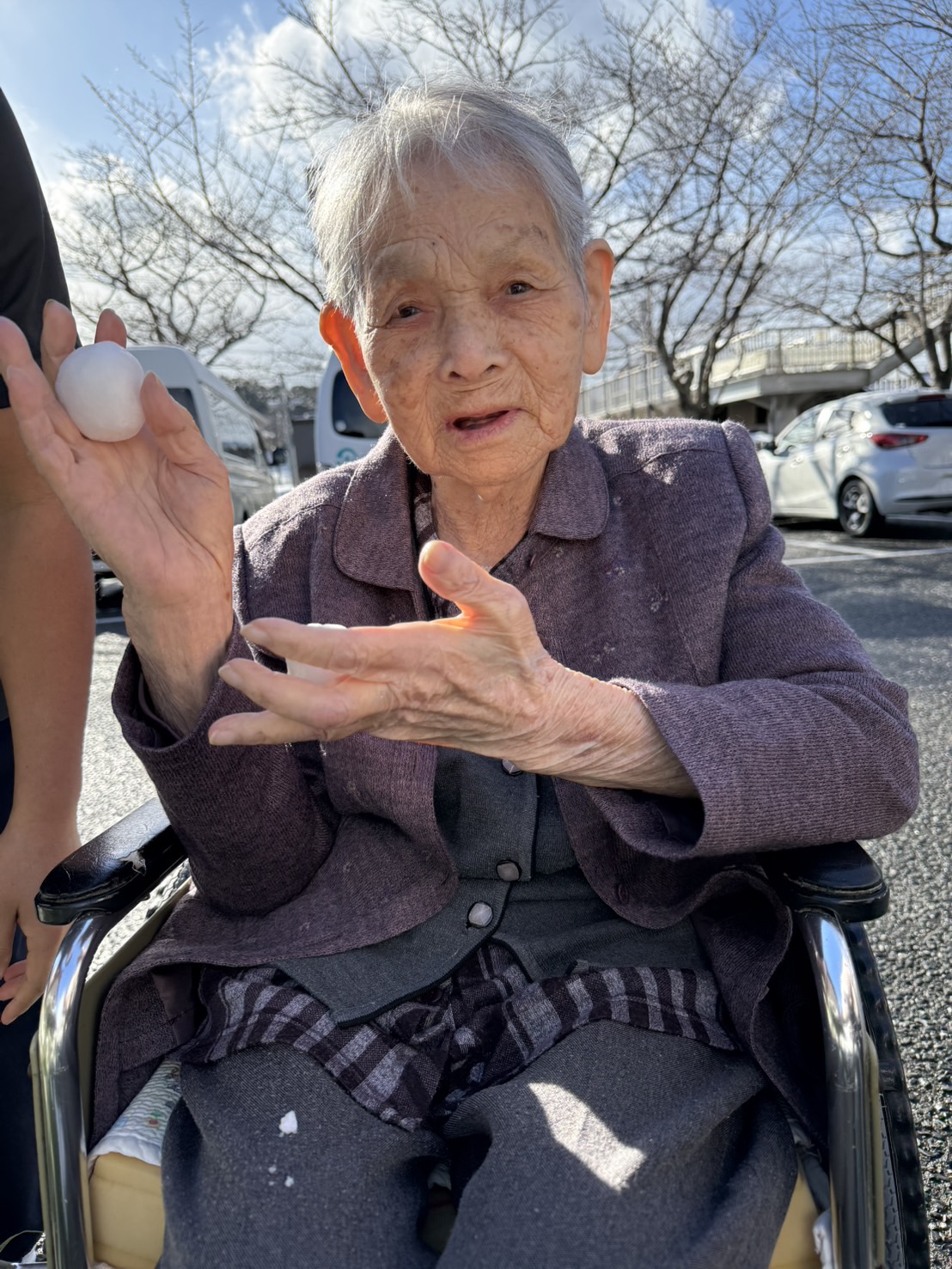 初雪ということで、寒いですが、外に雪を見に行きました。