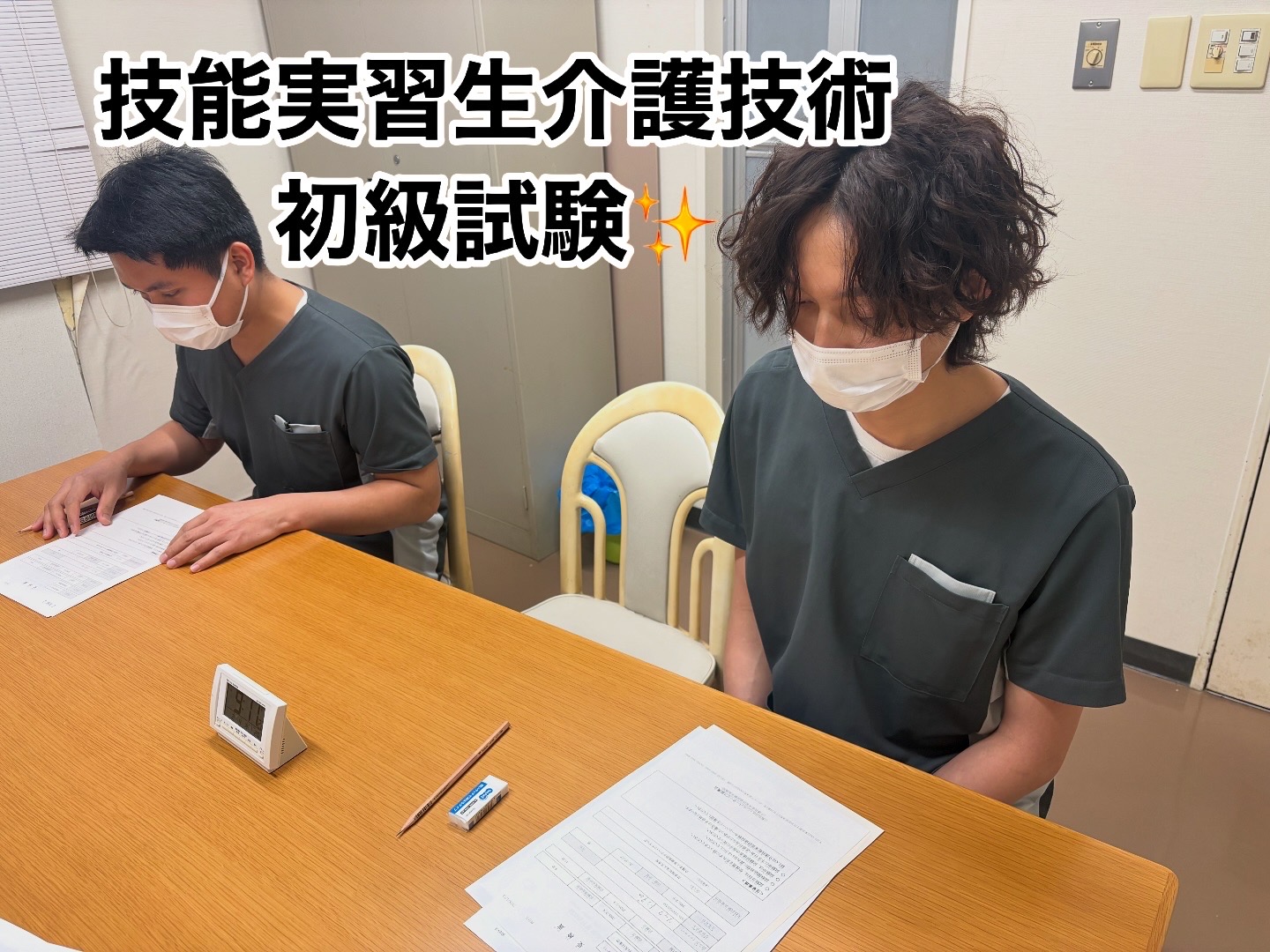 技能実習初級試験 2026年02月04日取組報告 7月に配属となった技能実習生2名が 介護技術初級試験に2名受験しました。 筆記試験も実技試験も専門用語がむずかしく、大変でしたが、 無事に終了しました。 結果が楽しみです。