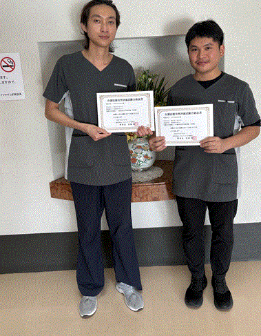 技能実習生初級試験に合格しました。 2026年03月17日取組報告 技能実習4期生が介護技術初級試験に合格しました。 物静かでまじめな二人です。 今後は、夜勤ができるようにがんばります。 2名ともおめでとうございます。今後の活躍が楽しみです。