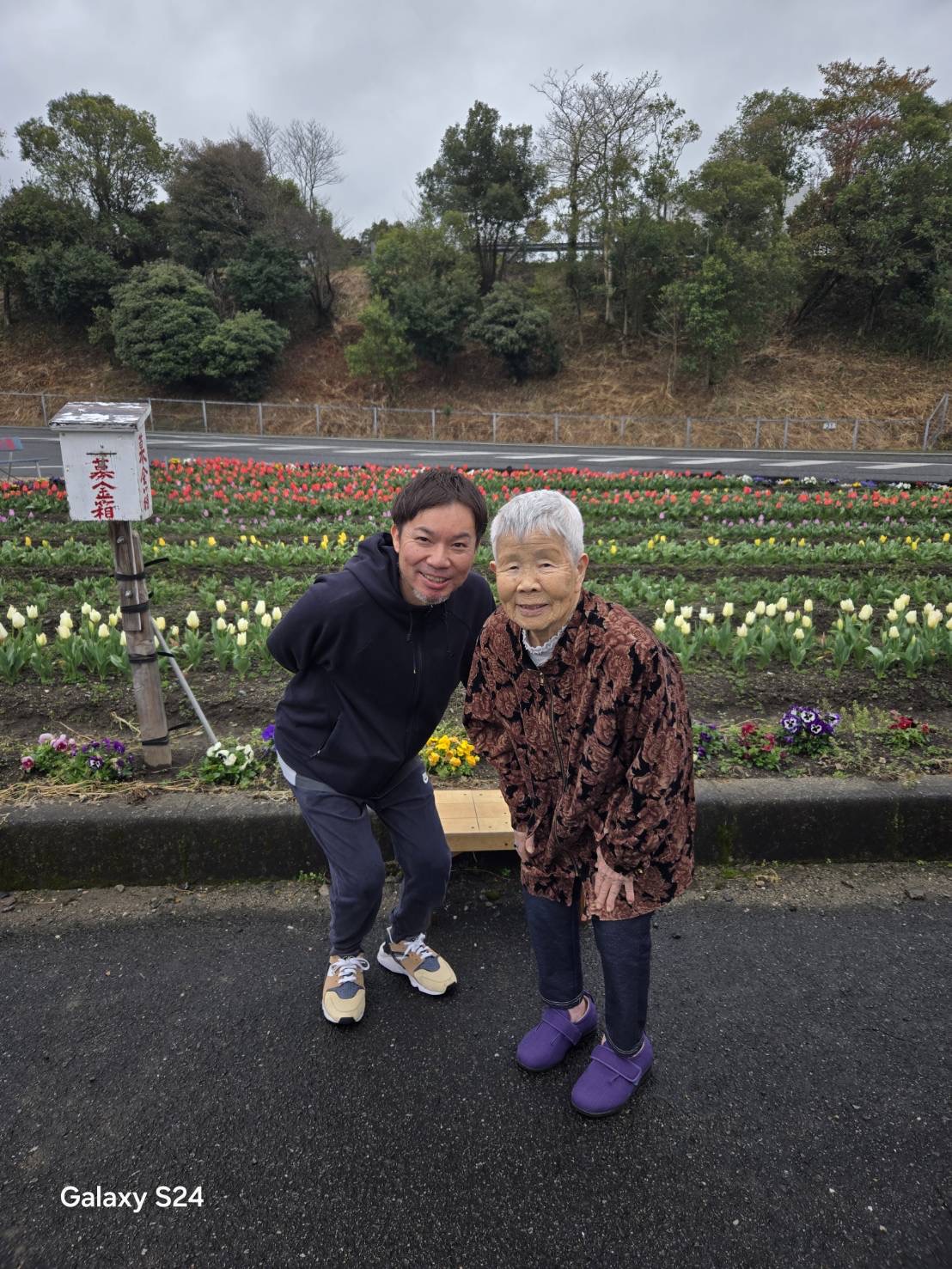 ドライブ(大和方面) 2026年03月25日取組報告 本日は、小雨でしたが、大和方面へチューリップを見に行きました。 きれいでかわいいチューリップに心が洗われる思いです♡ 久しぶりのお出かけにみなさん笑顔でした。
