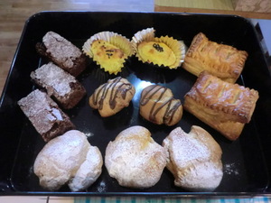 【デザートバイキング】・ババロア(バニラ、イチゴ、チョコ、抹茶) ・アップルポテトパイ ・シュークリーム ・スイートポテト ・チョコケーキ ・果物(オレンジ、キウイフルーツ)