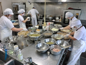 盛り付け時の厨房の様子です(^0^)