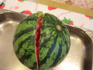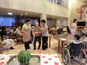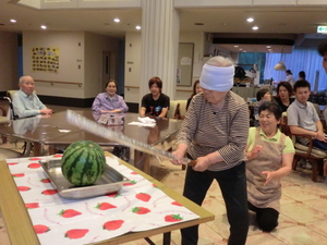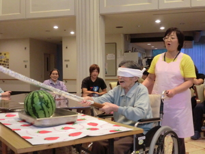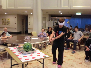 ↓さぁ、すいか割りですよぉ(^0^)/皆さん、しっかり構えて「とぉ~~~っ!!!」( ̄人 ̄)