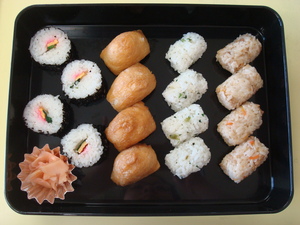 【献立(常食)】・いなり寿司 ・巻き寿司 ・かしわ飯 ・いりこ菜飯 ・たこ焼き ・焼きそば ・菜の花の辛し和え