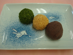 3月18日(金)は彼岸入りということで『三色ぼた餅』を昼食時に提供しました(^o^)/♪