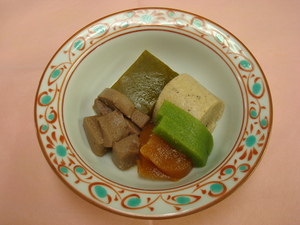 【ゆで豚のピーナッツ和え】 【牛肉とがんもの含め煮】