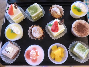 【デザートバイキング】・イチゴのケーキ ・チョコレートケーキ ・抹茶ケーキ ・シュークリーム ・オレンジ