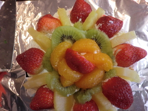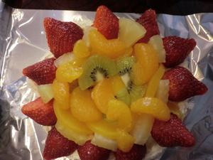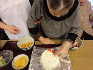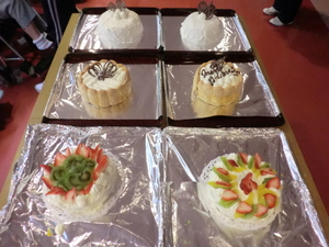毎年、栄養管理課で15ホール位のデコレーションケーキを作成していましたが、今回は各課でデコレーションをするという事で、ミキサー食分のケーキだけ作成しました(^0^)