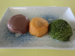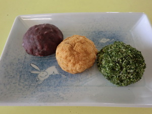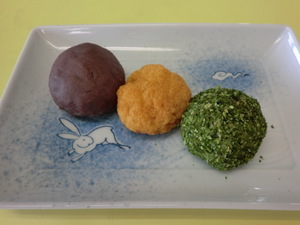 やすらぎではお彼岸ということで、本日(3/21)の昼食時に『三色ぼた餅』を提供しました(^▽^)/