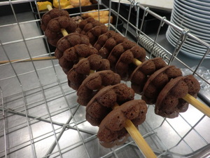焼きドーナッツは、トッピングにチョコと粉砂糖の2種類準備しました。