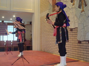 ←沖縄の伝統楽器「三線(さんしん)」の演奏♪